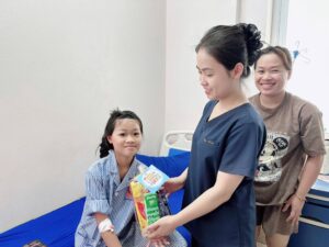 Những phần quà tuy nhỏ bé nhưng chứa đựng tình yêu thương và hy vọng, giúp các em thêm niềm vui, động lực vượt qua bệnh tật. Ánh mắt rạng rỡ và nụ cười hồn nhiên của các bé chính là món quà quý giá nhất dành cho tập thể y bác sĩ và Ban lãnh đạo bệnh viện.